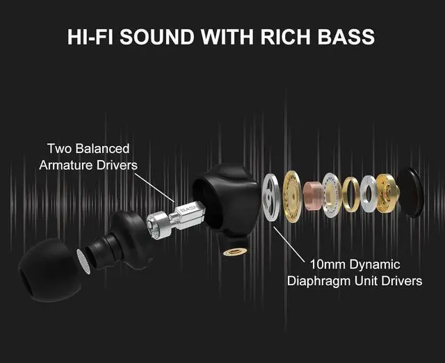 - ENHANCED BASS SOUND: Specifically designed to deliver stellar audio quality, this iem headphone provides premium performance; Featuring heavy, impressive driven bass, fast and accurate with quick attack and decay; Full and warm mids with excellent details