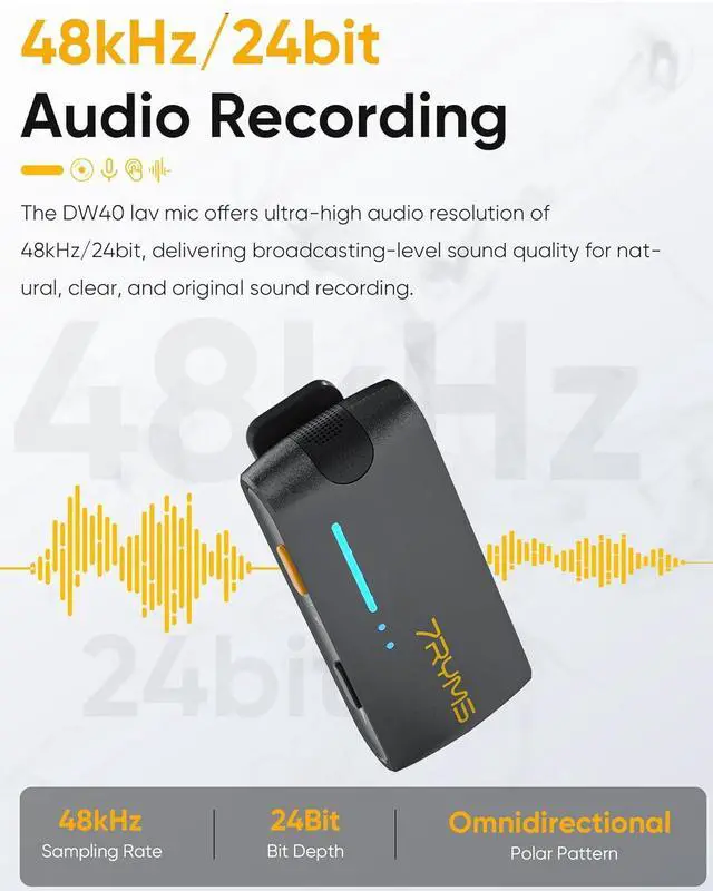 - 48kHz/24bit RecordingThis professional wireless microphone offers unparalleled audio quality with 48kHz/24bit resolution, delivering crystal clear and natural sound for your recordings. Ideal for live performances, interviews, and video production.
