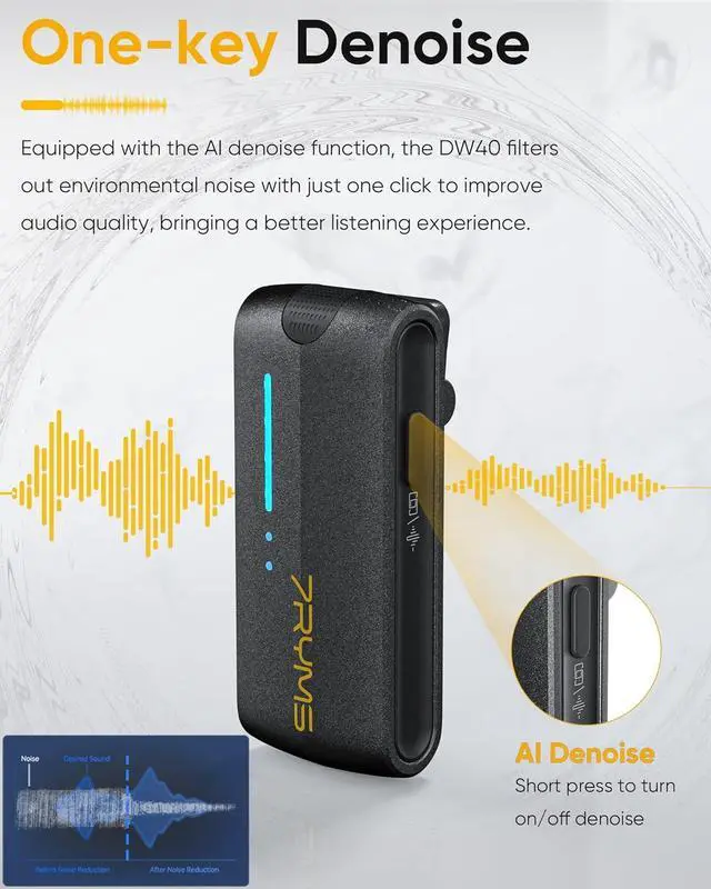 - AI Denoise & Real-time MonitoringThis lapel microphone is equipped with AI denoising technology, allowing you to easily filter out background noise and improve audio quality with just one click. The Real-time Monitoring Feature, along with the RX 3.5 mm TRS/TRRS headphone monitor port, ensures you can adjust recording conditions on the fly for a better listening experience.