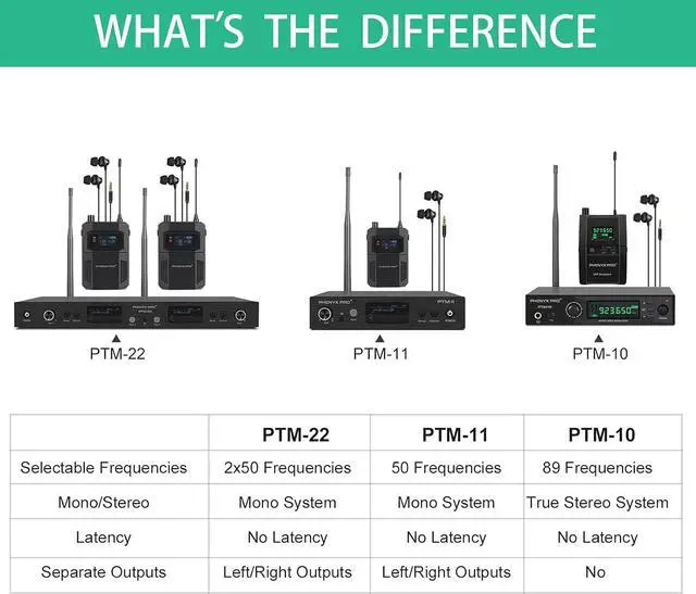 - WIRELESS PERFORMANCE: Utilizing the 900MHz frequency band, the stereo wireless IEM system benefits from less congestion compared to the 500MHz range and avoids latency often found in 2.4GH z setups. Tunable 89 frequencies of the in ear monitor wireless allow multiset operation with up to 5 systems simultaneously, freeing you from interference and dropouts. Reliable coverage of up to 160ft/50m delivers clear, smooth, and stable transmission, making it ideal for studio, stage, speech, exhibit, lecture, etc