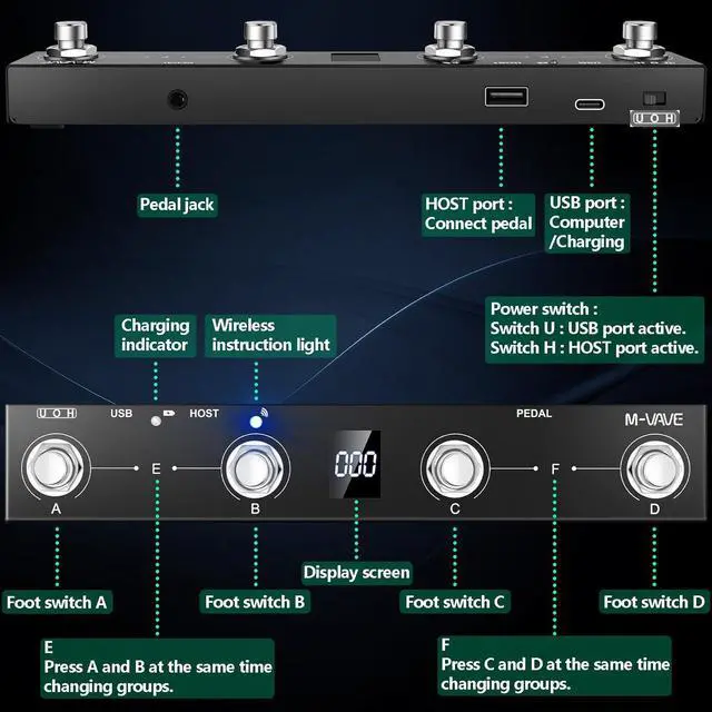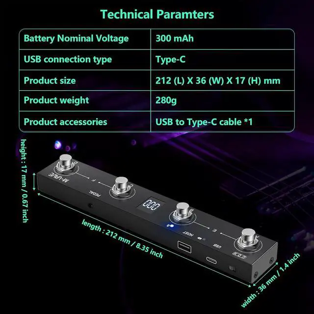 Wireless Connectivity: This BT MIDI foot controller allows for wireless operation and control of music apps via BT wireless connectivity. Can be used on multiple platforms including WINDOWS, MAC, IOS, and ANDROID. Can use the foot switch to switch the preset control effect switch and other light functions.