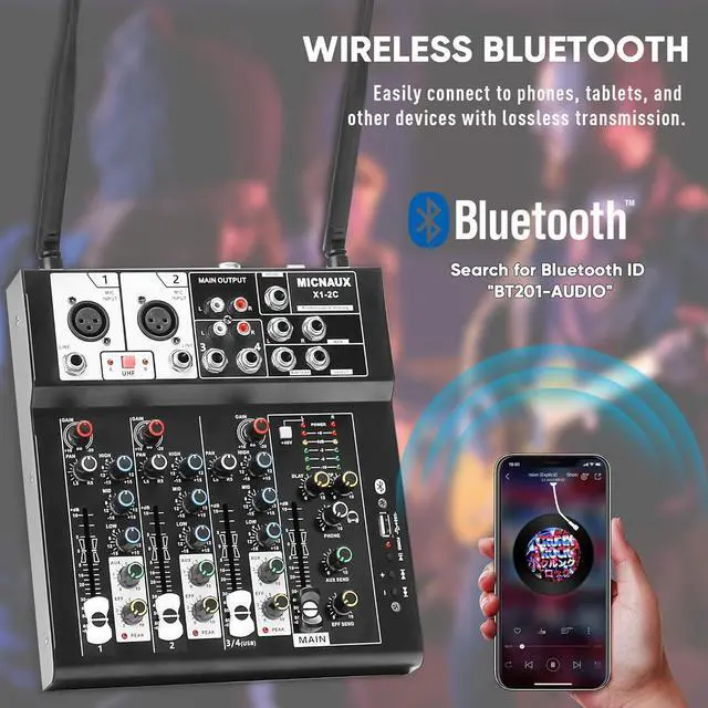 - Seamless Bluetooth Connectivity Effortlessly connect your devices wirelessly! The sound board supports Bluetooth-enabled smartphones, tablets, and laptops, letting you stream music with zero loss. With a range of up to 33 feet, youll enjoy flexible, uninterrupted streaming for every occasion.
