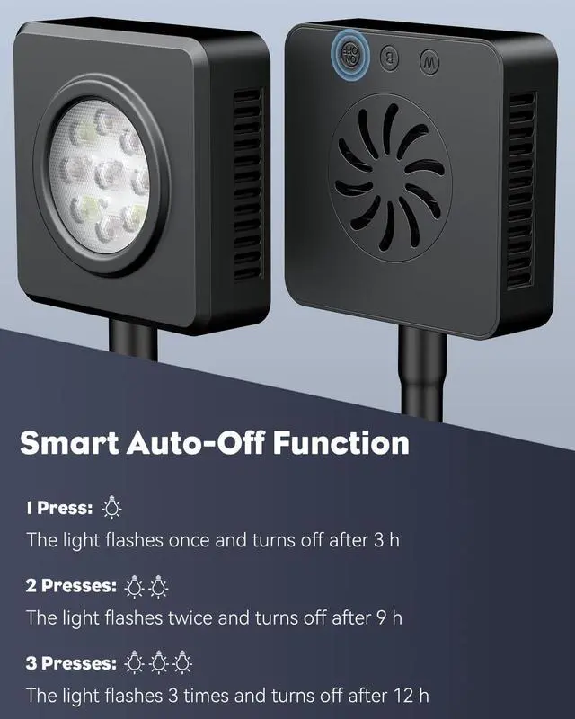 - Touch-Control: Simply hold ON/OFF for 3 seconds to activate the saltwater aquarium light. Once on, press ON/OFF once, twice, or 3 times to set the light to turn off automatically after 3, 9, or 12 hours. Smart timing for effortless lighting management