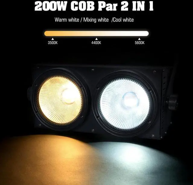 Various Scenarios: LED par lights can be easily installed on the ground, walls, or trusses, making it suitable for a wide range of indoor and outdoor settings, including stage performances, DJ setups, Photostudio, weddings, parties, and morefalse- High-Power Light Source & High CRI: This is a brand-new 200W high-power LED stage spotlight, with a CRI greater than 92, and three adjustable color temperatures and brightness in warm white (3500K), cool white (5600K), and mixed white (4400K). The light source output is stable, and the color is pure, creating perfect color-washing effects for events