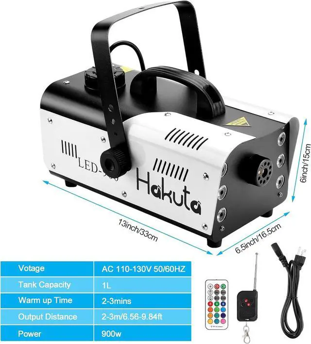 - DURABLE MATERIAL: The fog machine is formed by metallic material, which turns out to be lightweight, portable, sturdy and durable. With the metal stuff covered outside, it is not easy to corrode and the heat dissipation effect is superb. In this way, it has a long working life-span.