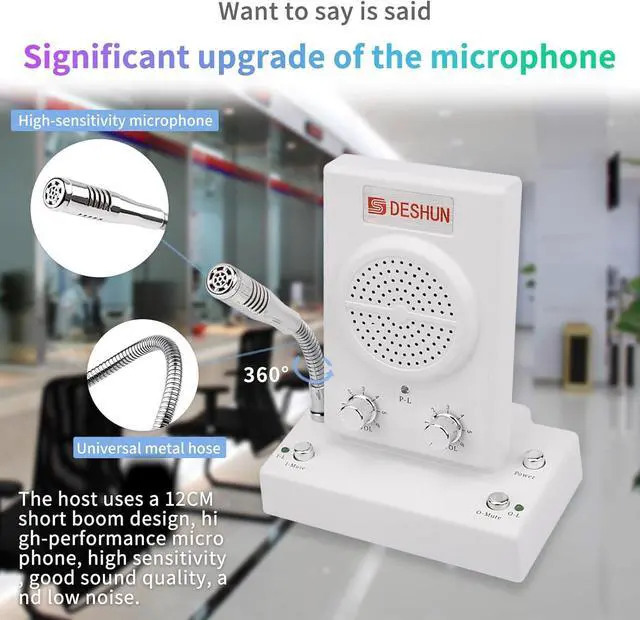 - Wide application ScenariosDESHUN intercom system DS-2308 is suitable for bank window, hospital window, post office window, securities window, embassy visa office, securities company, scenic spot ticket office, station, restaurant and other places, DESHUN, make communication easie