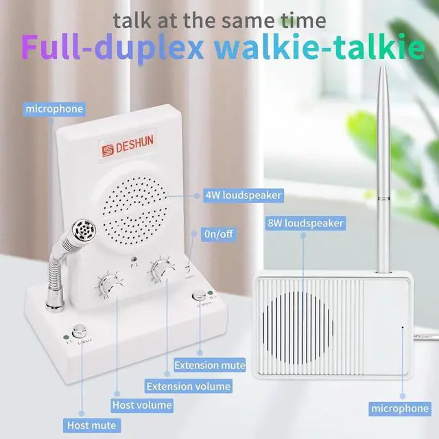 - Two-way intercom technologyDESHUN intercom system DS-2308 uses automatic two-way communication technology, without any operation can automatically identify voice signals, say goodbye to signal delay, can be real-time easy intercom, better experience.