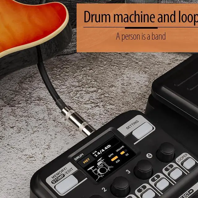Offering 50 presets for instant playability, 42 drum rhythms, a 30s looper, and phone connectivity for backing tracksfalseOffering Stomp Mode for classic single-pedal control with 5 flexible effect blocksfalseFeaturing a bright 128×32 LCD for real-time feedback, easy-to-use controls, and a durable, customizable pedalfalseThis all-in-one multi effects guitar pedal provides a range of effects and amp/cabinet simulations. Adjust the knobs to find your ideal tone effortlessly. Using IR (Impulse Response) technology, it faithfully replicates classic cabinets, enhanced by high-fidelity modeling. Each preset is artistically crafted, drawing inspiration from iconic songs in music history.