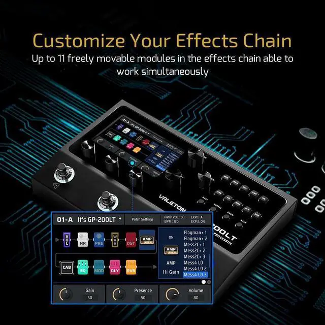 - Our multi effects processor 100 Built-in Drum Rhythms and 180 Seconds Looper, 256 Presets, Equipped with the New-Gen HD Modeling Technology, Adjustable Signal Chain with Maximum 11 Simultaneous Effect Blocks