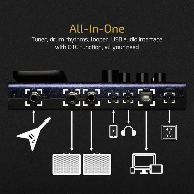 - 100 Built-in Drum Rhythms and 90 Seconds Looper, 198 Presets, Adjustable Signal Chain with Maximum 9 Simultaneous Effect Blocks