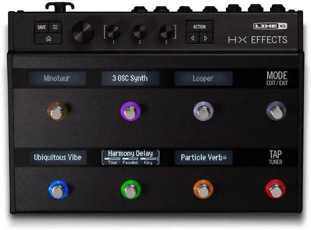 Capacitive-sensing switches with LED rings and scribble stripsfalseActs as the command center for your entire amp and pedal rigfalseHX Effects features 100+ effects taken from the award-winning Helix hardware and software processors, all in a compact, pedalboard-friendly format, and up to nine effects can be run simultaneously. In addition, legacy effects from the acclaimed Line 6 M-Series and Stomp box Modeler pedals are also included. Effortlessly edit effects using the eight capacitive-sensing footswitches, six scribble strip LCDs, and color-coded LED rings. Simply touch a footswitch with your finger to instantly jump to any effect, quickly adjust a parameter, or assign controllers.