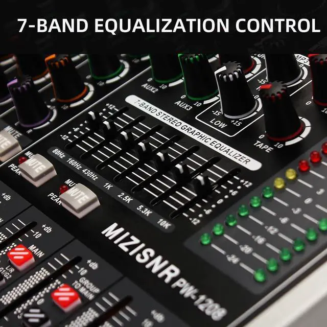 Perfect for professionals and creators alike! falseBluetooth ConnectionThis DJ mixer features built-in Bluetooth control, allowing you to pair it with Bluetooth devices such as tablets, phones, and more to input music or voice directly into the mixer. It includes built-in controls for play/pause, song switching, and mode selection. The Bluetooth connection works within a range of 33 feet- Powerful 12-Channel Professional Mixing ConsoleUnleash your creativity with this powerful 12-channel mixer, featuring XLR and stereo line inputs for versatile audio connections. Each channel is equipped with independent GAIN, EQ, AUX, and PAN controls for precise sound shaping and a mute button to instantly silence individual inputs.