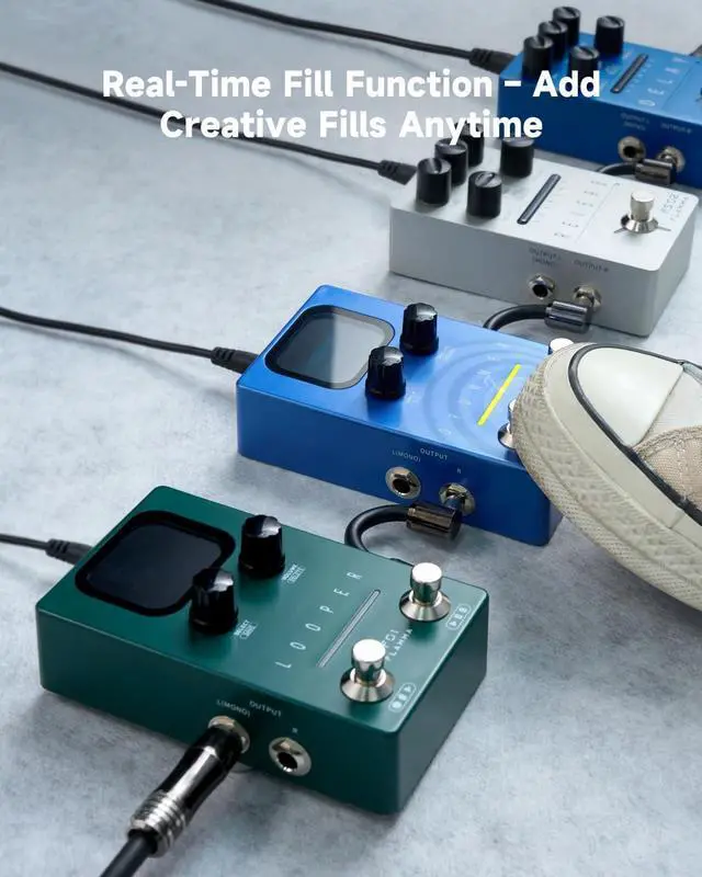 Fills Control: Set BPM with tap tempo and trigger real-time fills, ensuring dynamic control for a drum machine for guitar in practice or performancefalseStereo Inputs and