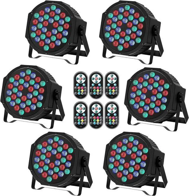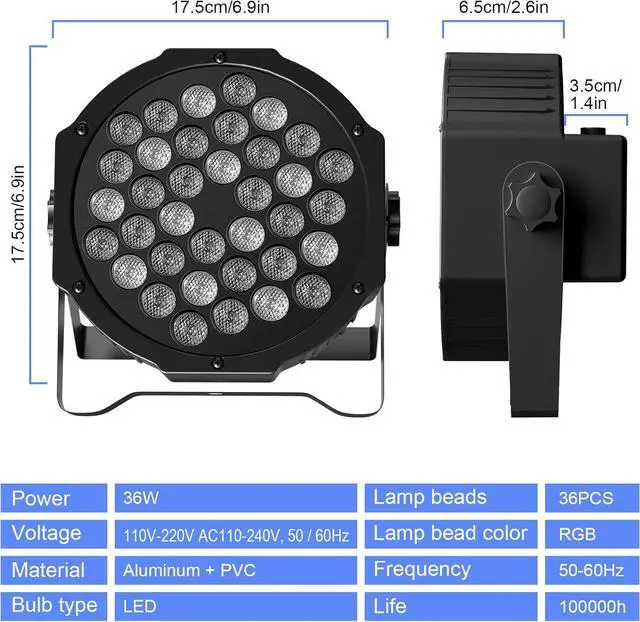 Modes LIGHTING EFFECT: Led stage lights have 36 leds RGB mixing colors washing effect for stage lighting and dj lights, stage lights for parties. Led Par lights have Static Color / Color Changing / Color Fade / Auto / Sound / Master-Slave / DMX modes. Speed and Sound Sensitivity are Adjustable, disco lights for parties.