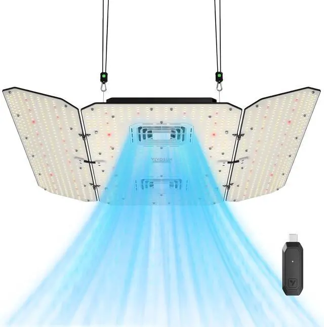 Integrated Fan Light: The AeroLight Wing AW400SE grow light features a built-in circulation fan for enhanced canopy airflow, balancing temperature and humidity; It boasts a unique foldable-wing design for versatile light distribution; Superior heat dissipation extends its lifespan to over 50, 000 hours