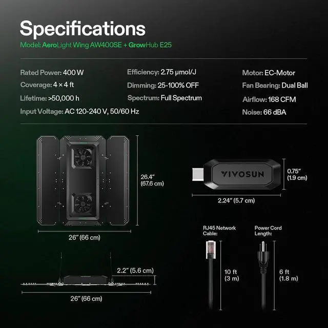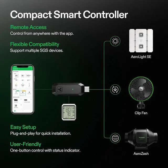 - GrowHub Controller E25: Connect to the Vivosun Smart Grow System with the GrowHub Controller E25 to monitor and control the AeroLight via the Vivosun App; Compatible with various devices, it takes care of your plants from seed to harvest