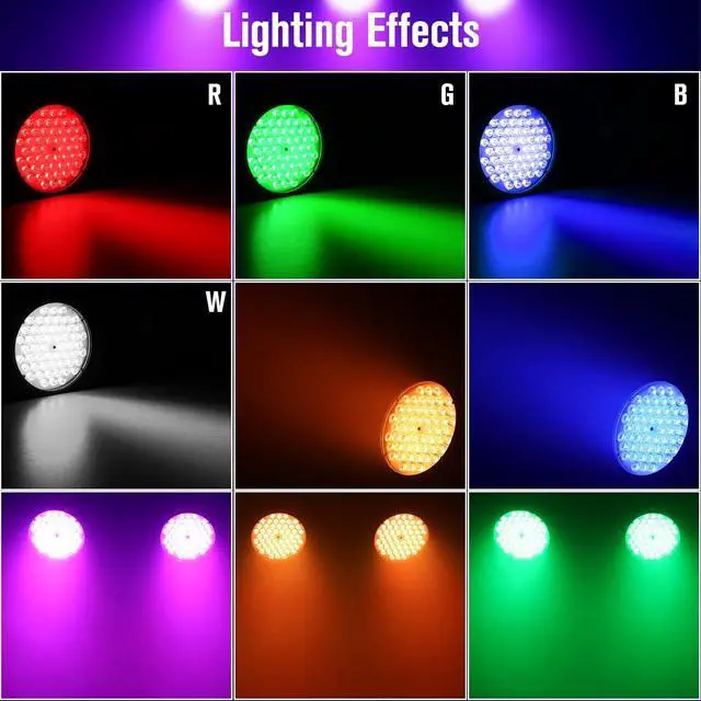RGBW Full Color The 4 in 1 DJ light equipped with RGBW(red, green, blue, white) light sources. Compared to regular RGB light, it adds a white LED. Provide brighter and purer colors than traditional RGB lights, suitable for various lighting effects. falseFlexible Control Modes This party light offers DMX, automatic, and sound-activated modes, plus multiple pre-set colors for easy scene creation. It can combine well with speakers and can produce colorful dj lights effects. It can be used as stage lights, DJ lights, strobe lights, wash lights for both indoor and outdoor events.