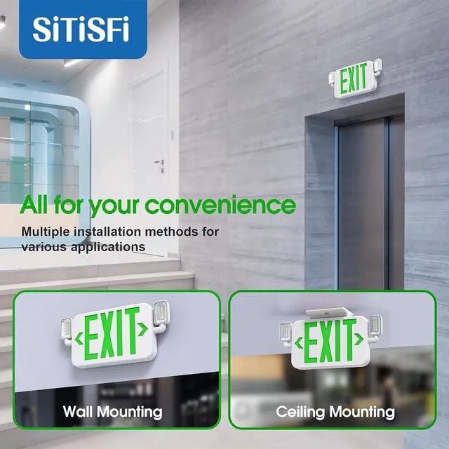 : 120V-277V AC universal voltage, Backup Battery, Double Sided, Dual MountingSiTiSFi Benefit SiTiSFi is honored to based in the USA, providing first-class quality products at affordable prices backed by experts. We maintain the high standards for all products by testing to ensure that best performance and safety environment- UL Listed & Quick InstallationSiTiSFi exit sign approved by UL 924 certificate and comply with commercial grade. Also the emergency exit sign meet your safety needs from offices, doorways, shopping mall and everything in between. No need to break a sweat with its quick and easy installation process that automatically snaps together, can be wall or ceiling mounted; rugged, snap fit, canopy, screws and hardware are included in the package.
