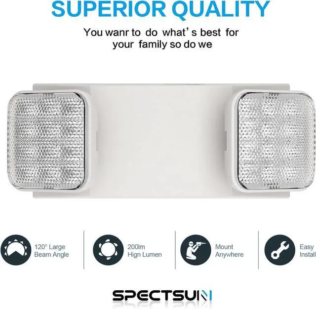 Ratings]: UL damp location listed standard at 50-104 degrees F, meets or exceeds all applicable requirements for Life Safety Code and state specific requirements. false- [5 Year's Warranty] - Emergency light of SPECTSUN has been passed UL certificate and comply with FCC regulations. We promise 5 years warranty for the electrical parts and housing, 2 years warranty for battery.