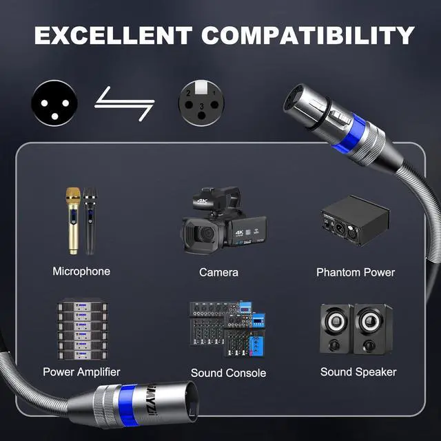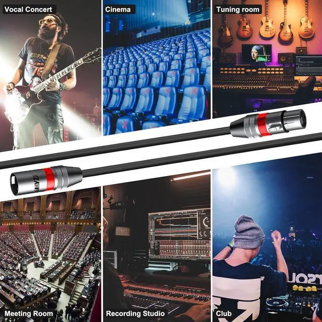 - WIDE COMPATIBILITY: Microphone Cable is perfectly compatible with equipment with 3-pin XLR connectors such as microphones, stage lighting, mixing boards, power amplifiers, studio harmonizers, speakers, patch bays and more. Widely used at stage speakers, studio, club stages, KTV, and home theater, professional sound reinforcement. Make you enjoy music at any time.