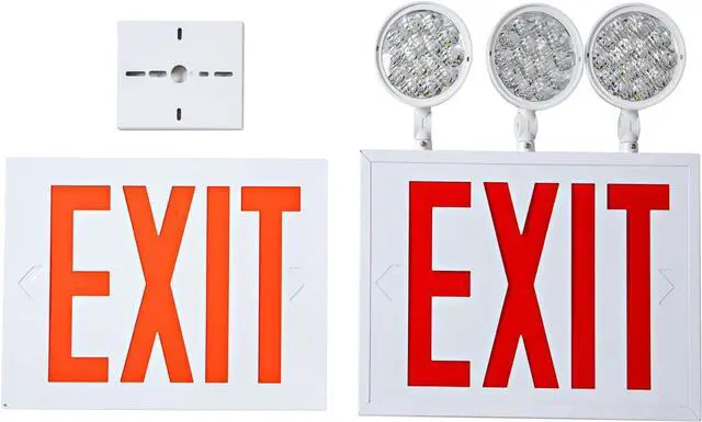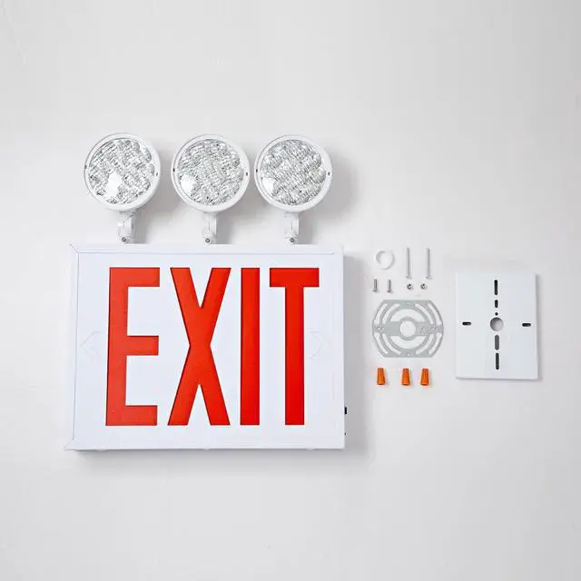 EASY INSTALLATIONThis exit sign with emergency lights with 3 mounting options: top mount, side mount and back mount (canopy included). Suitable for outdoor and indoor general places. The MOUNTING PARTS are packed in the Housing. Please open the emergency exit lights before installation. falseWIDE RANGE APPLICATIONThis battery backup led exit lights with double face are widely use in bussiness facilities to provide illumination in different positions such as office buildings, exit doors or stairways in schools, churches, hospitals, canteen, commercial building and industrial building. false5 Year Warranty- We specialized in led emergency light for many years and offers you a 5-year warranty to cover any defected or quality issues. falseTANLUX New York Approved Emergency Exit Sign, Red Exit Sign with Emergency Lights, White Steel Housing, Hardwired with Battery Backup, AC 120/277V, Single and Double Faces, Two or Three Heads Optional