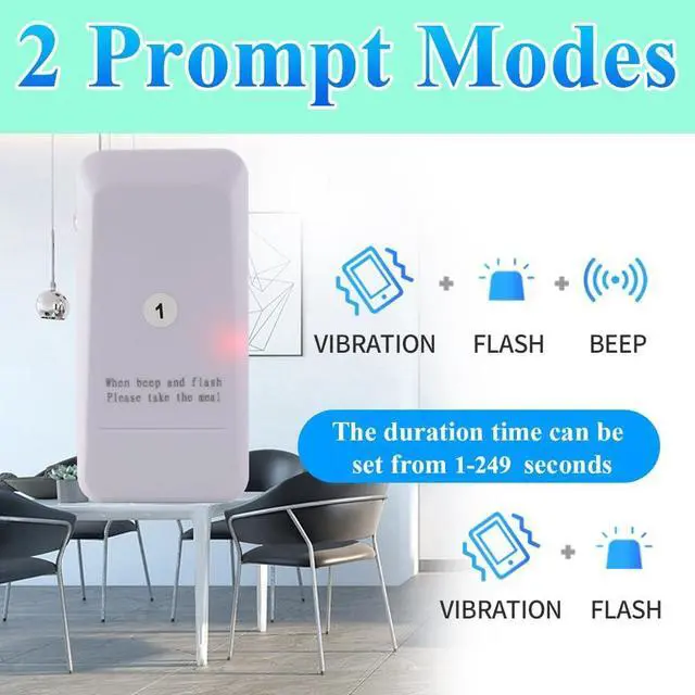 - Switchable Alarm Modes --- LOUKIENE restaurant pager has 2 prompt modes: flash + beep + vibrate; only flash + vibrate; you can switch the mode you need.