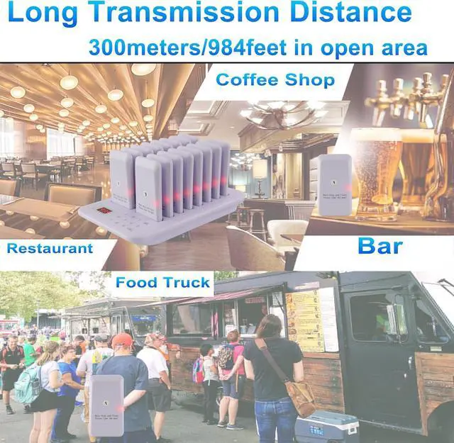 - Customer Focused --- With loud, visible alerts, the pagers effectively notify customers when their meal is ready, eliminating the need for queuing and enhancing their dining experience., Suitable for a variety of environments such as restaurants, food courts, hotels, hospitals, churches, inventory management and kitchen cart