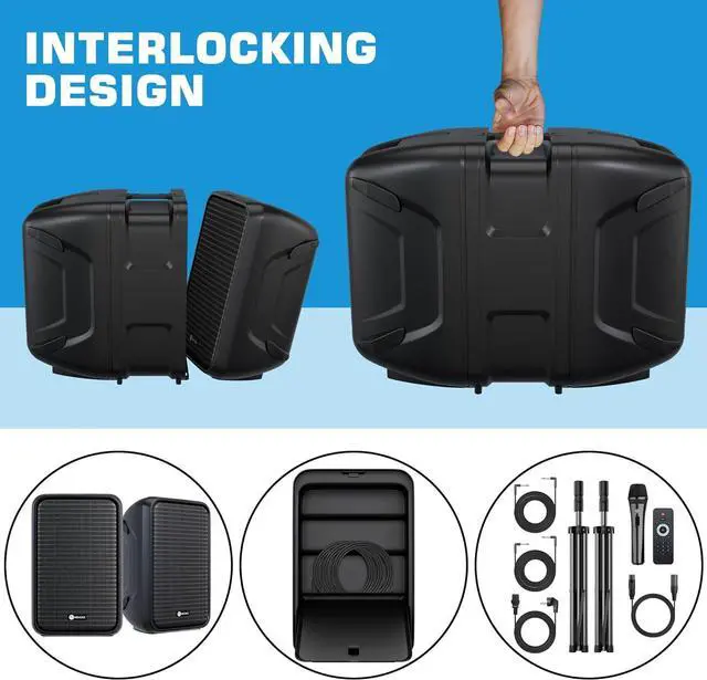 - The lightweight, suitcase-style design makes transport and setup a breeze. Carry the entire system with one hand and enjoy high-quality audio coverage wherever you go, without the burden of bulky equipment. Ideal for portable PA system or on-the-go karaoke.