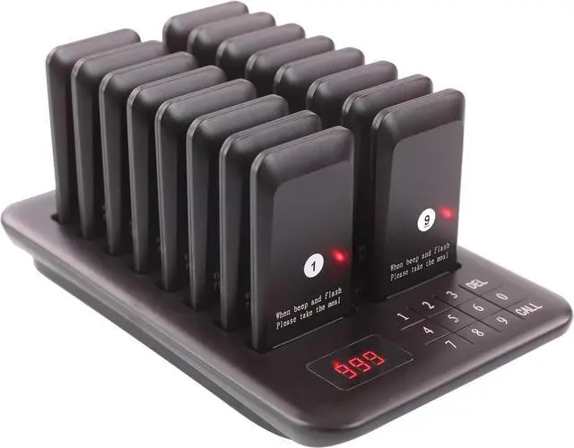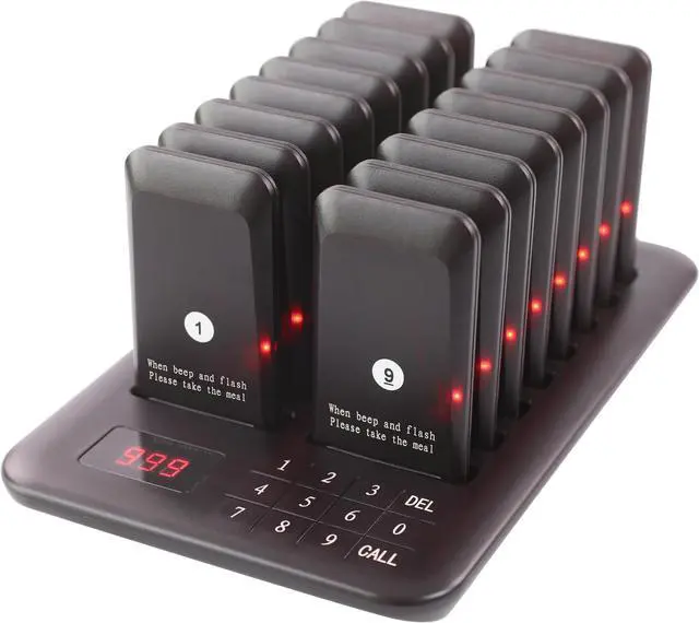 Long Working Distance --- The LOUKIENE wireless paging system allows you to reach customers or staff up to 300 meters / 984 feet away with beeps, vibrations and flashing alerts on 16 pagers and beepers. falseLong Standby Time --- Each pager features a built-in 3.7V /200mAh rechargeable battery with a stacked charging design, eliminating the need for frequent battery changes. With a full charge, the receiver can work frequently for about 20 hours. falseOne-touch Group Shutdown Function --- LOUKIENE pagers can shut down all pagers in the charging base by simply entering the number 999 and pressing the call button.