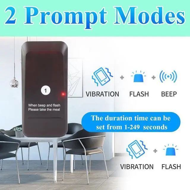 - Switchable Alarm Modes --- LOUKIENE restaurant pager has 2 prompt modes: flash + beep + vibrate; only flash + vibrate; you can switch the mode you need.