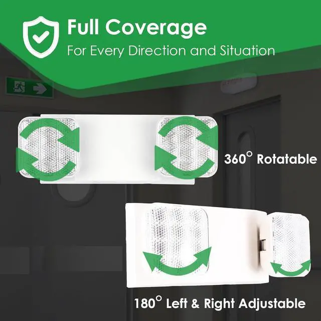 - Reliable Emergency Lighting: Our emergency lights for home feature dual adjustable LED lamp heads, offering wide coverage and glare-free illumination. Whether during power outages, fires, or other emergencies, these lights are designed to keep you safe.