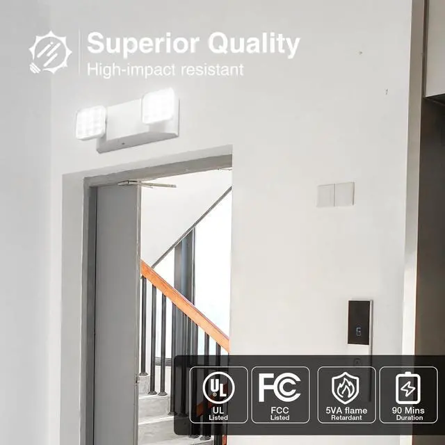 - High Standard - The Commercial emergency light fixtures have Injection-molded housing with engineering grade. 5VA flame retardant, high-impact resistant. Complies with UL 924 emergency light.