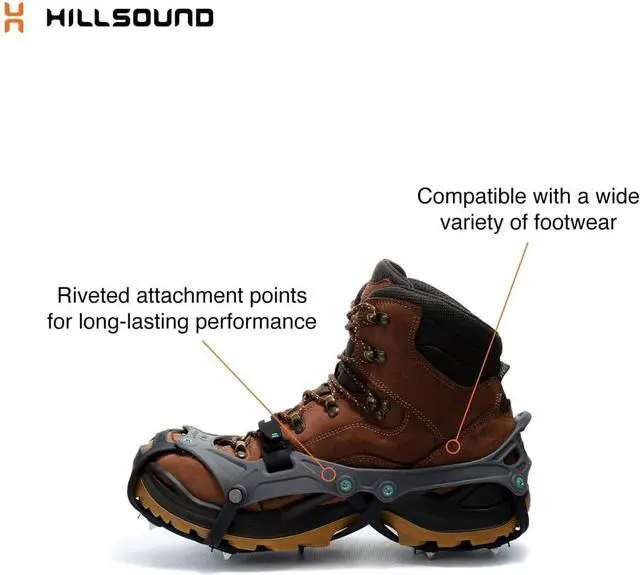 - RELIABLE GRIP: 18 stainless steel 1/4 inch flexible spikes are dispersed from heel to toe making for even weight distribution, stability, and comfortable tracking through icy conditions.