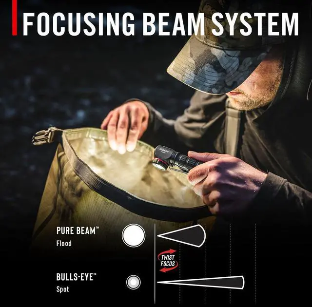 - TWIST FOCUS: Adjust the beam shapeflood beam, spot beam, or anywhere in betweenby twisting the bezel to focus the light.