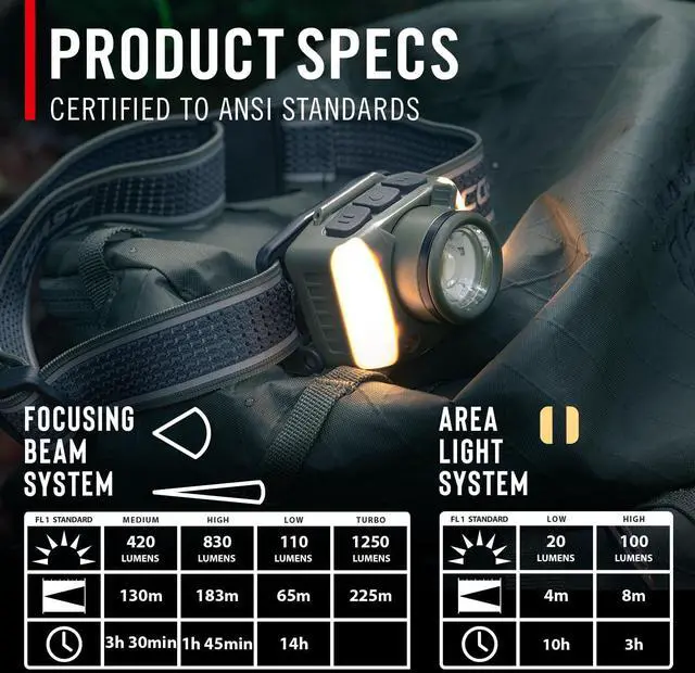 Ts total commitment to quality and Lifetime Warranty program. falseMeet every moment with the right light. From the workshop to the shoreline, the FL95R goes big on versatility and user-friendlinessfeaturing 8 output modes, four different light types, and peak brightness of 1200 lumens. Use the four-mode PURE BEAMâ main opticmedium, high, low, Turbofor routine lighting needs, and adjust your beam shape using the TWIST FOCUS Radial Arm to easily transition between Ultra View Flood Beam and BULLS-EYE Spot Beam. Use the diffused, warm-white ARC Area Lights for close-up situations when softer light and softer shadows make for better overall vision. And use the anti-glare red and green beams to prevent night blindness and to avoid detection in your surroundings. The adjustable, silicone-lined COAST Ultra-Strap is made of breathable mesh for non-slip performance and long-lasting comfort. COAST Rechargeable Plus technology allows the headlamp to run up to 14 hours on one charge or on three AAA alkaline batteries (purchased separately). Simply plug into the integrated USB-C port to recharge. Constructed of top-grade materials, the FL95R is IP54 water-resistant and dust-resistant and backed by the COAST lifetime warranty.