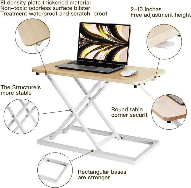 Adjustable range: 2-15 inches. The gas spring in the vertical desktop riser can be adjusted in multiple positions. As long as the nearby spring is pulled, the height of the table can be easily raised and lowered, allowing for immediate switching between sitting and standing, achieving easy office work. falseEnvironmentally friendly and sturdy materialsThe desktop is made of environmentally friendly medium density fiberboard thickened material, which is healthy and environmentally friendly, and can withstand heavy objects, ensuring safe use in office use. falsestanding desk converter Relieve long-term sedentary posture, No installation required, easy to disassemble and use.
