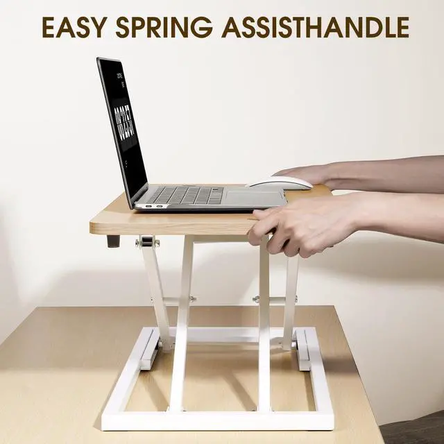 - Height adjustable Adjustable range: 2-15 inches. The gas spring in the vertical desktop riser can be adjusted in multiple positions. As long as the nearby spring is pulled, the height of the table can be easily raised and lowered, allowing for immediate switching between sitting and standing, achieving easy office work.
