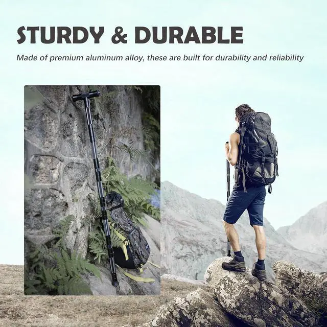 - Versatile Grip Design: The hiking stick feature a multifunctional grip with clever tool designs at the ends, and the handle can be set up as either a straight grip or a T-shaped grip
