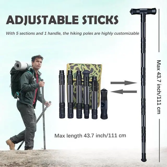 - Adjustable Length: With 5 sections and 1 handle, the hiking poles are highly customizable, extending to a maximum length of 43.7 inches (111 cm), allowing you to adjust the length according to your needs