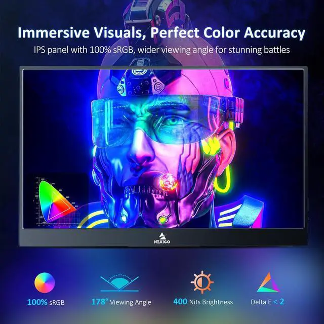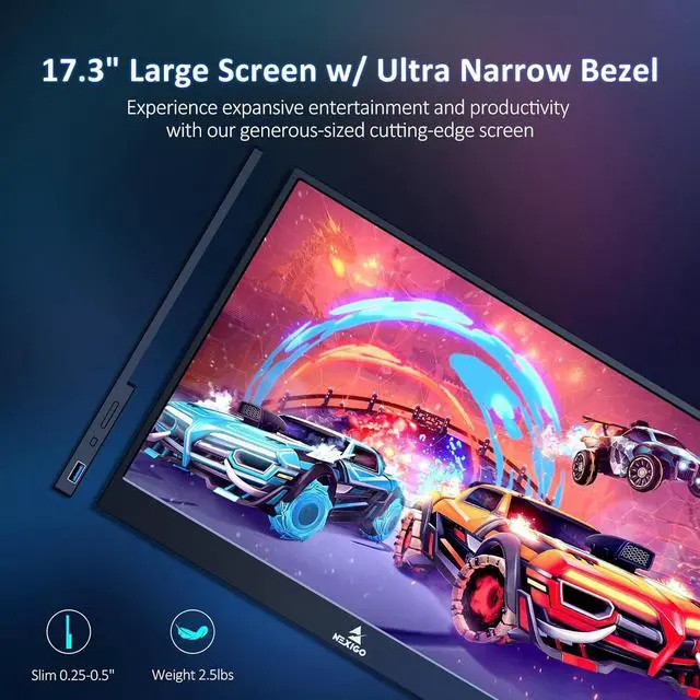 For creating the best viewing experience, HDR technology provides an astounding picture with a stronger contrast, reduces flickering, increases dynamic range, and exceptional detailfalse- Ultra-Real Gaming ImmerseWith unparalleled rich, vivid detail, the NexiGo portable monitor boasts a large 17.3 inch screen and full IPS coverage. Equipped with an astounding 1, 000:1 contrast ratio and with an unimaginable 178 degree viewing angle, this gaming monitor delivers 100% sRGB color space coverage allowing users to immerse in their games.