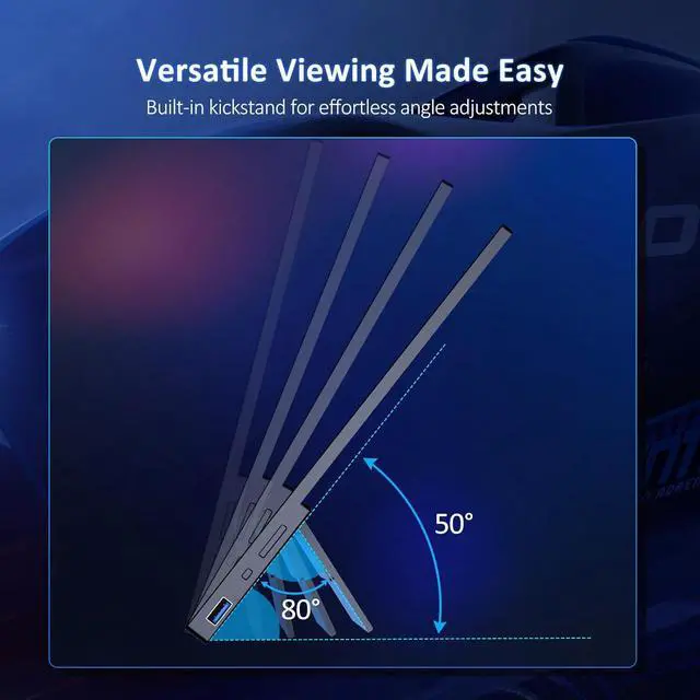 No Screen TearingThis gaming monitor features FreeSync and G-SYNC compatible, ensuring a smooth gaming experience by reducing stutter, screen tearing, and input lag. It synchronizes the monitor's frames with the graphics card's frames, eliminating ghosting, glitching, and blurring for a seamless gameplay experienceBuilt-in Dual Speakers & KickstandDifferent from other monitors, this 300Hz portable monitor carries an adjustable kickstand, which is convenient for users to carry out. And Built-in dual stereo speakers deliver clear audio for videos and music. Alternatively, connect your headphones via the 3.5 mm aux port for wired sound outputHDR Technology & Eye Care ScreenThis 1080P portable gaming monitor is warm to care for users' eyes, eye care technology minimizes blue light to reduce eye strain.