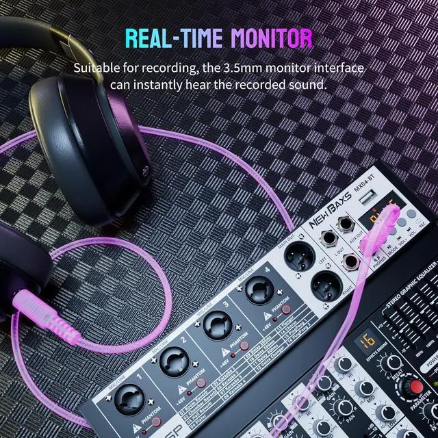 7 Band EQ - Easily adjust the high, Mid, and low frequencies of each channel with the onboard 7-band EQ and gain controls. Independent Adjustment Faders Include Single Audio Input Channel, Total Audio Output Volume Adjustment Fader, And Effect Adjustment16 High-quality Digital Effects - Built-in effects with 16 professional digital algorithms especially reverb and delay effects, expand the spatial effect of the sound with its outstanding realism and naturalnessfalseReal-time Monitoring Feature - Monitor each channel's signal levels in real-time directly from your mobile device- Professional Audio Mixer Board - NEW BAXS portable 4-Channel mixer has Bluetooth for wireless streaming and uses it as an input to mix signal with other input channels.