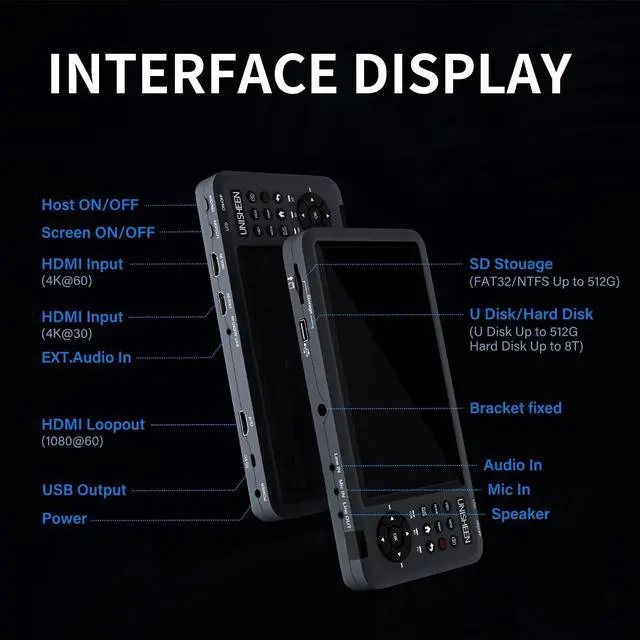 Plug-in USB/ SD PortsCompatiable with USB Flash Disk, or USB Hard Disk (Not Included), Allows You Use USB flash disk or SD card to Save Your Precious Videos, Transfer Videos to Computer Easily. Capture HD Video supports picture in picture and realtime-playback. Support exFAT/ FAT32/ NTFS Format. falseTwo Power Supply ModesUR500 HD video recorder can be powered not only by power supply (Included), but also by battery (Not Included). It can support F550/F750/F970 (Not Included) and other batteries, which allows you to use and playback watch your video on anywhere.