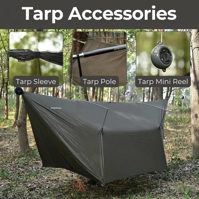 - ULTRALIGHT AND VERSATILE. Its a backpackers dream. The rainfly itself weighs just 1.8 lbs but dont let the lightweight material fool you as Onewinds hammock tarp offers heavy-duty weather protection. Designed with an overlapping door system to make it completely versatile. This design helps shield you from the outside elements, keeping you safe whether its snowing, raining, or sleeting but if the weather is nice, simply fold up the doors to enjoy the wind on your face.