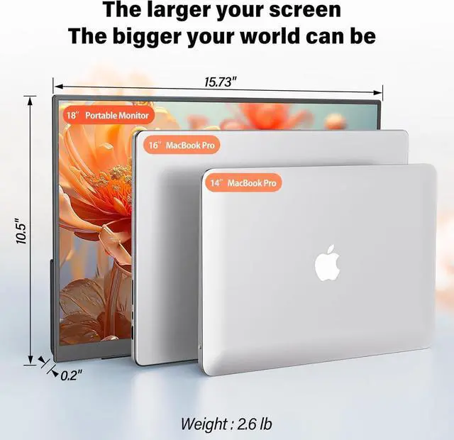Note: If you think the size is too large, please contact us, we have a dedicated after-sales team to serve youfalse- Portable Gaming Monitor2K QHD resolution and amazing 180 Hz refresh rate give you the edge in all your gaming quests; Equipped with FreeSync technology and HDR function to eliminate image tearing and stuttering for higher motion clarity and smoother gameplay