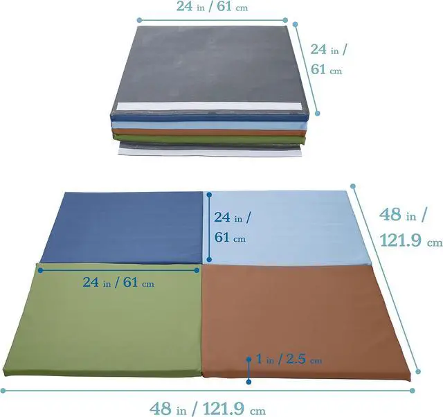 - Product Dimensions: Mat measures 48 L x 48 W x 1 H; folded mat measures 24 L x 24 W x 4 H; Adult Active Engaged & Direct Supervision Requir