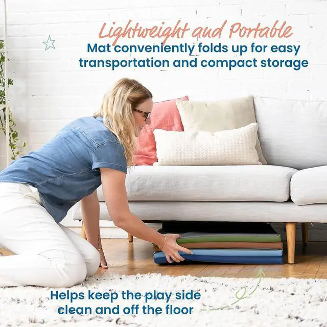 - Folding Design: Quickly assemble with sewn-in stay-put fasters; mat folds into a compact square for space-saving storage in closets, large bins, or under the bed when not in use