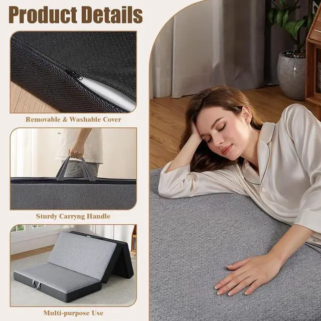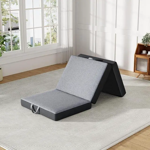 Portable & Space-Saving Tri-Fold Design: Our tri-fold mattress is the ultimate portable sleep solution, featuring an easy-fold design with handles for effortless transport and storage. Perfect for travel, camping, RV trips, guest rooms, and small spaces, it quickly transforms into a compact size when folded