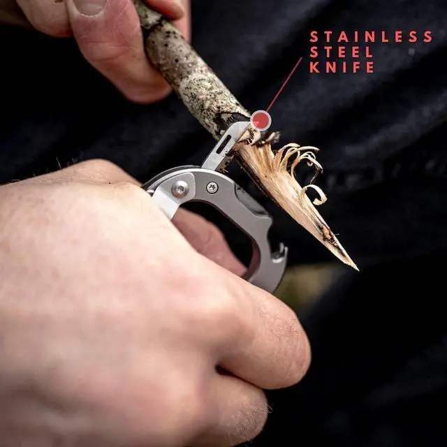 MULTI-FUNCTIONAL DESIGN - Includes a pry tool, bottle opener, screwdrivers, wrenches, knife, ruler, and tungsten glass breaker for emergencies, making it the perfect EDC for camping, hiking, or daily use. Clip your essentials securely to your backpack, belt, or keyring. falseVERSATILE & EXCHANGEABLE LOCK CLIP - Features a spring-loaded gate with a replaceable lock. This adaptable design is an essential tool and stylish accessory, perfect for handling tools, flashlights, and small bags. falseCOMPACT & DURABLE DESIGN - Despite weighing only 106g, this carabiner can support up to 120kg.