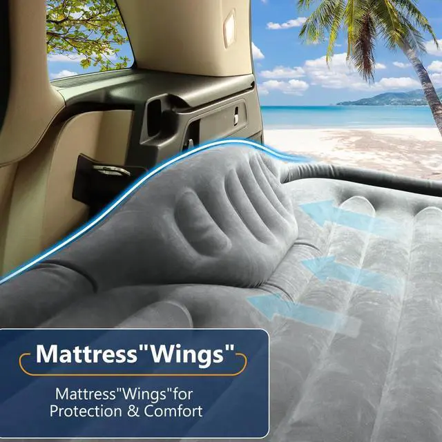 - Raised Head Design & 'Air Mattress Wings' Featuring a 9-inch built-in pillow for ergonomic comfort, the mattress also includes unique 'SUV Air Mattress Wings' that snugly fit around the wheel arches, ensuring full-body support.